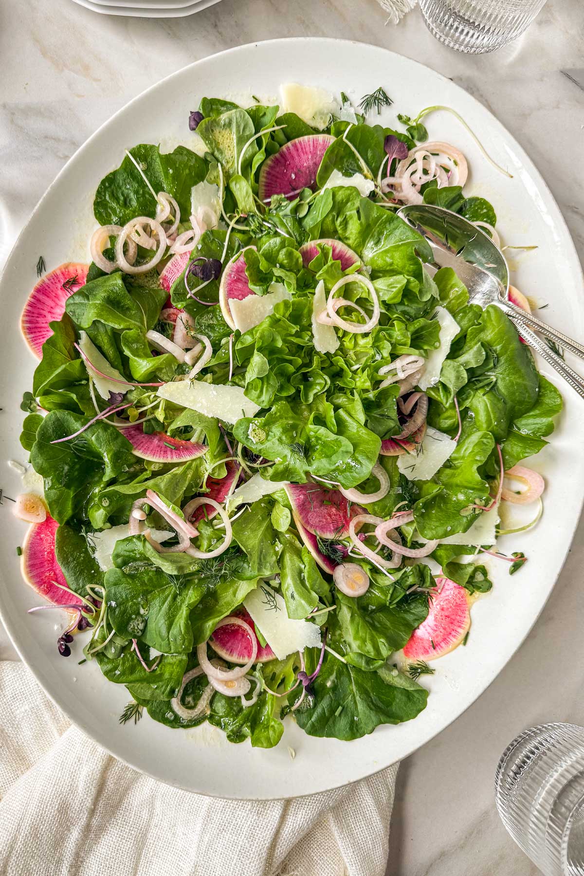 Early Spring Greens Salad with Watermelon Radish & Pecorino